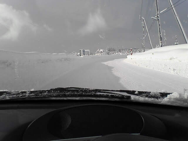 (この時は3速でもホイールスピンする程のツルツル凍結路がありました。堤防の上の凍結路は要注意!!)